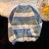 Men's Fall/Winter Contrast-Striped Crewneck Knit Sweater Retro Causal Relaxed-Fit Sweater