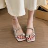 Fashion Summer Women Thick Heel Slippers Fashion Crystal Narrow Band Slide Ladies Casual Open Toe Dress Sandalias