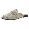 Fashion Plus Size British Style Metal Embroidery Mule Shoes for Women Low Heel Square Toe Slip-On Sandals 2025 Summer Casual Footwear