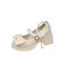 Fashion 2025 New High Heel Bow Mary Jane Shoes Women's Fashion Round Toe Shallow Mouth Belt Platform Non-Slip Autumn Single Shoes