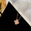 Classic Single Flower with Diamond Powder Shell Necklace, Fresh and Sweet Wind Four-leaf Clover Versatile
