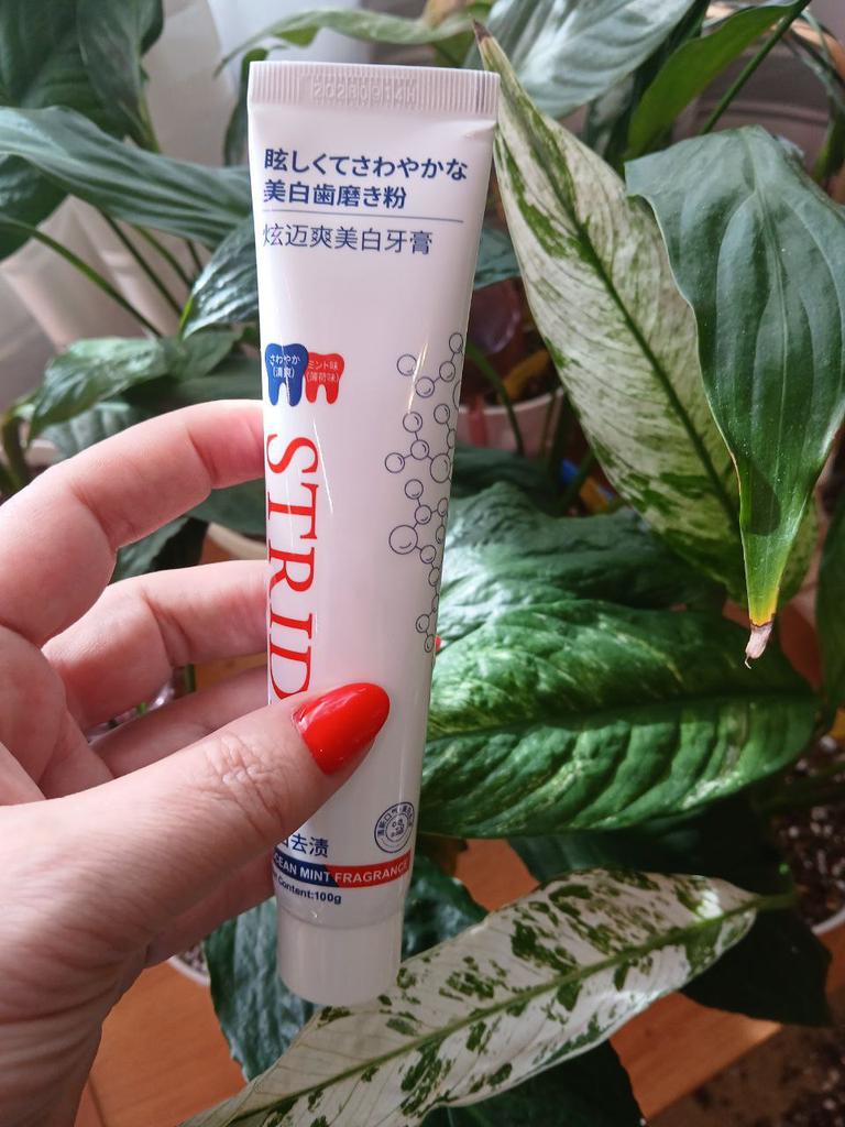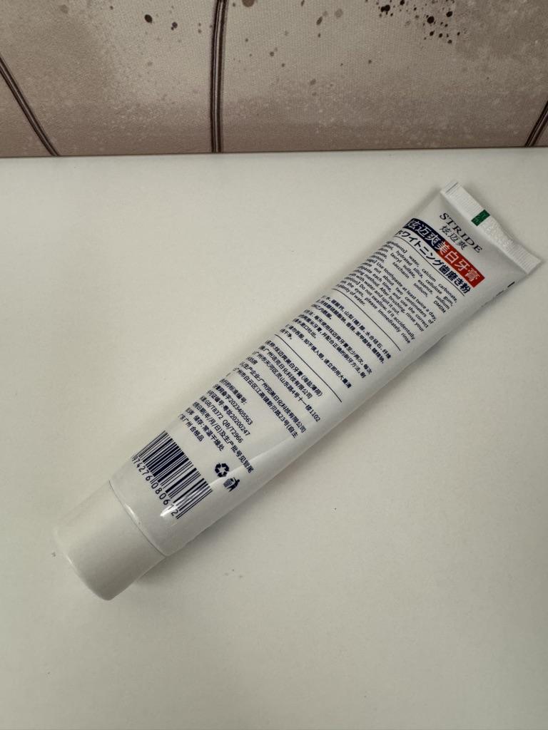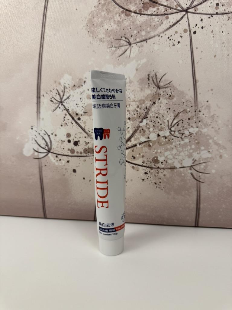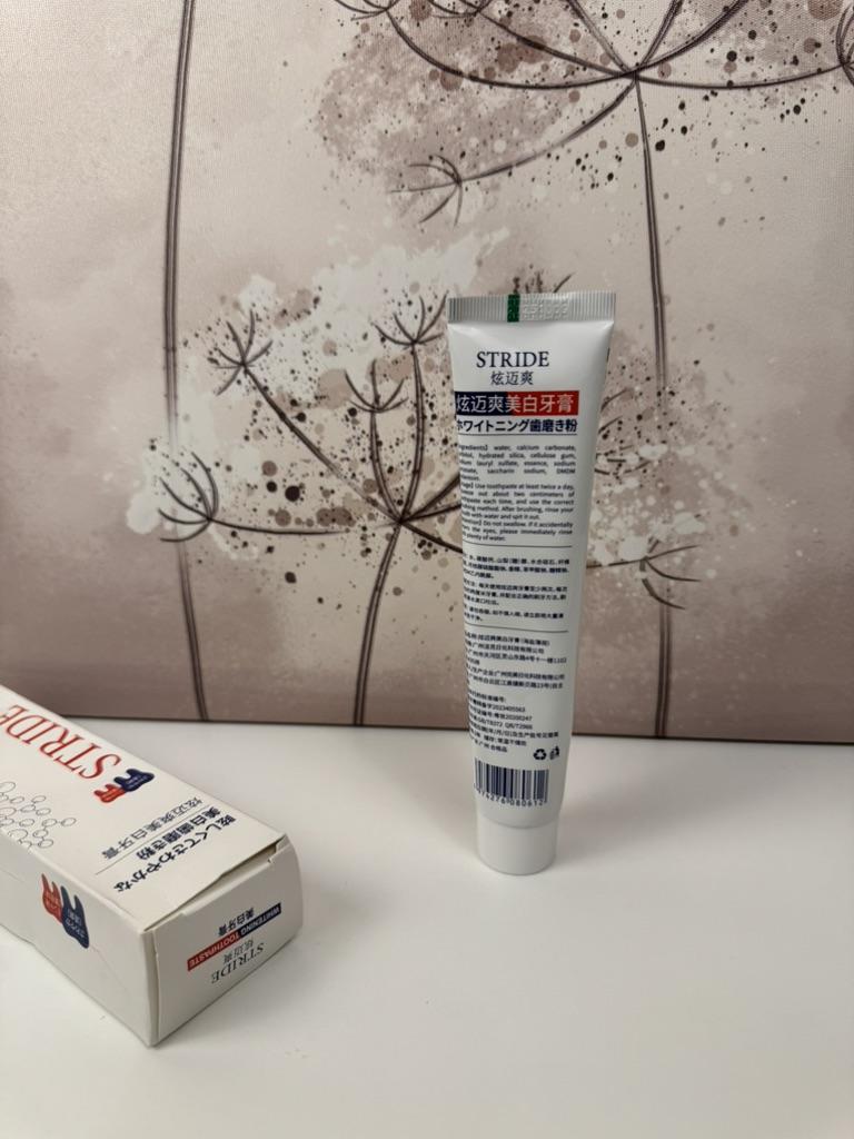 Stride Whitening Toothpaste (Japan) Japanese dental aesthetics: effectiveness and protection Japanese oral hygiene products are famous for not being excessively abrasive, focusing more on the chemical removal of stains and enamel repair rather than aggressive "scrubbing". ✨ Main Features Stride toothpaste stands out for a formula that aims to restore the natural whiteness of teeth without causing the classic sensitivity from chemical whitening. • Stain-Removing Technology: Uses agents that dissolve surface stains (coffee, tea, nicotine) by acting on the protein bonds that fix them to the enamel. • Protective Action: In addition to whitening, it creates a barrier that prevents new pigments from fixing immediately. • Taste and Texture: Unlike Western products that are often very "mentholated" and spicy, Stride usually has a very fine, clean, and persistent mint flavor, with a dense but not excessive foam. 🦷 Results on Teeth 1. Natural Whitening: Don't expect an immediate "bleach" effect (which often damages the enamel), but a return to the natural brightness of the tooth already after the first week. 2. Sensation of Cleanliness: The surface of the teeth feels extremely smooth to the touch with the tongue, a sign of effective plaque removal. 3. Zero Sensitivity: It's perfect for those with sensitive teeth but don't want to give up a brighter smile. 📦 Logistics and Shipping A remarkable strength was the delivery time. • Origin: Japan. • Arrival time: 15 days. • Assessment: Receiving a product from Japan in just two weeks in Italy is an excellent result. Usually transoceanic shipments can take up to a month; 15 days indicate premium logistics management and a smooth customs clearance. 📝 Final Considerations The strong point: The ability to polish and brighten without minimally damaging the enamel or irritating the gums. Who I recommend it to: To those who consume a lot of coffee or tea and are looking for a high-quality daily product that is superior to common supermarket toothpastes.