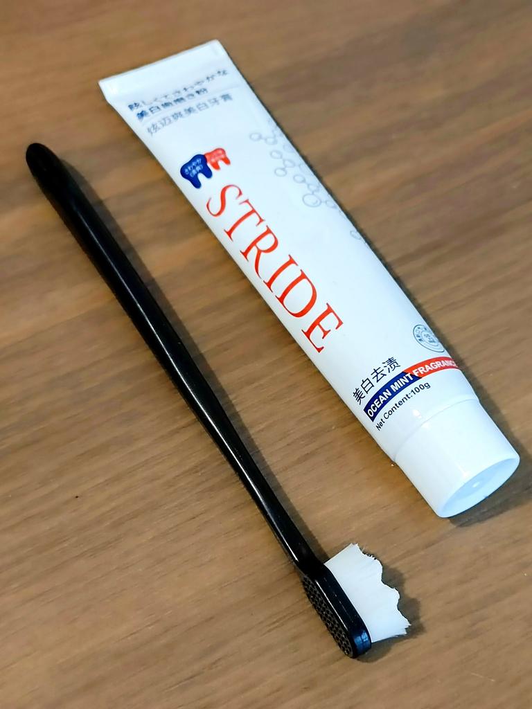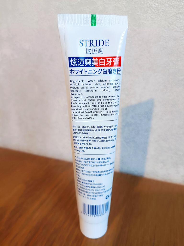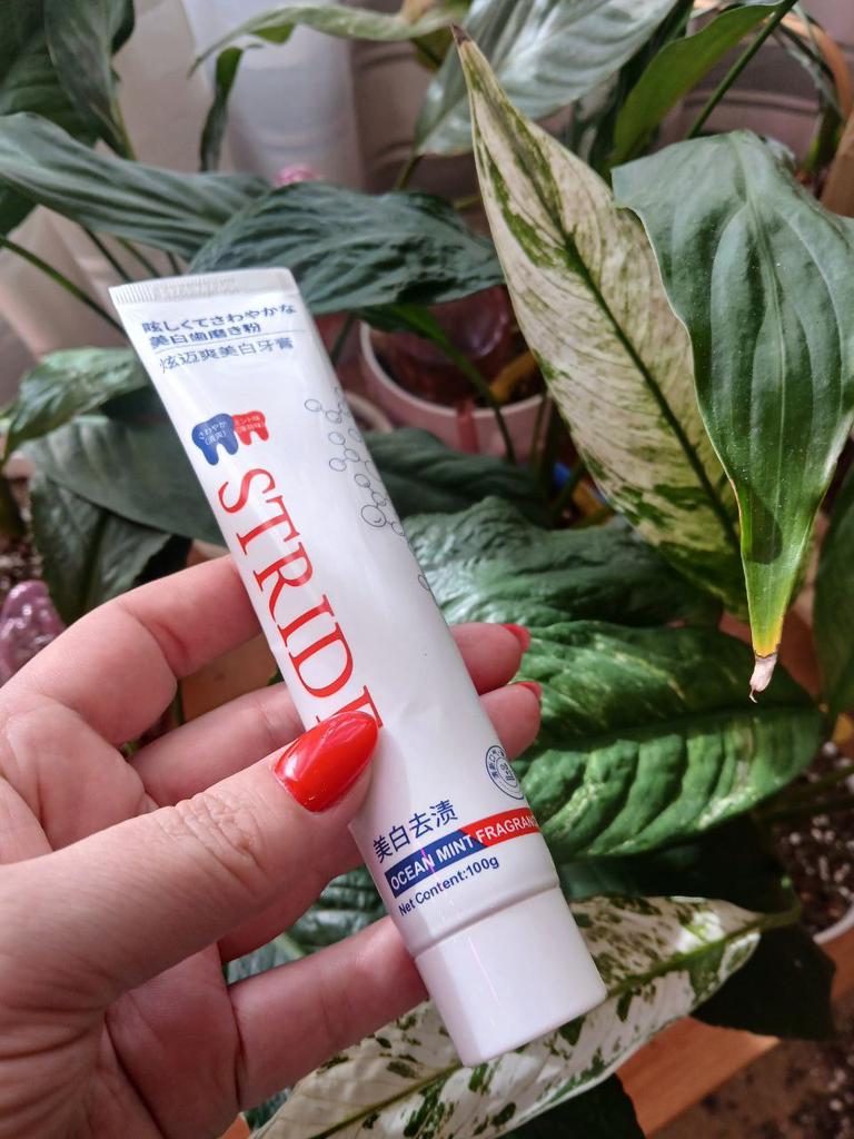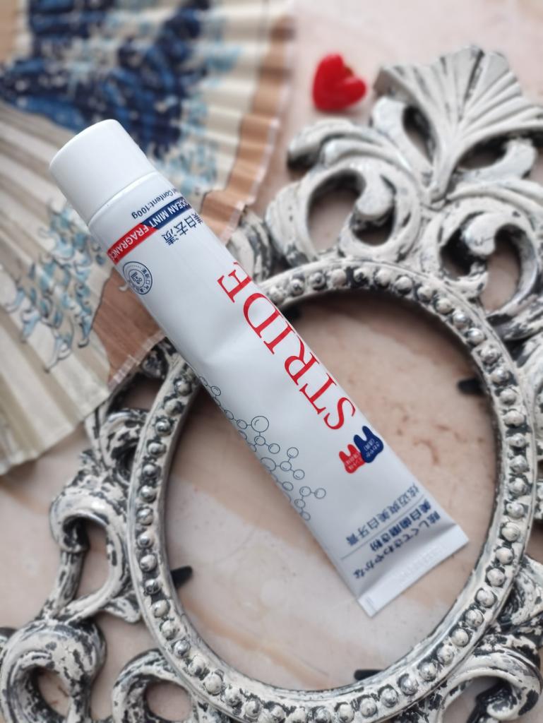 Stride Whitening Toothpaste (Japan) Japanese dental aesthetics: effectiveness and protection Japanese oral hygiene products are famous for not being excessively abrasive, focusing more on the chemical removal of stains and enamel repair rather than aggressive "scrubbing". ✨ Main Features Stride toothpaste stands out for a formula that aims to restore the natural whiteness of teeth without causing the classic sensitivity from chemical whitening. • Stain-Removing Technology: Uses agents that dissolve surface stains (coffee, tea, nicotine) by acting on the protein bonds that fix them to the enamel. • Protective Action: In addition to whitening, it creates a barrier that prevents new pigments from fixing immediately. • Taste and Texture: Unlike Western products that are often very "mentholated" and spicy, Stride usually has a very fine, clean, and persistent mint flavor, with a dense but not excessive foam. 🦷 Results on Teeth 1. Natural Whitening: Don't expect an immediate "bleach" effect (which often damages the enamel), but a return to the natural brightness of the tooth already after the first week. 2. Sensation of Cleanliness: The surface of the teeth feels extremely smooth to the touch with the tongue, a sign of effective plaque removal. 3. Zero Sensitivity: It's perfect for those with sensitive teeth but don't want to give up a brighter smile. 📦 Logistics and Shipping A remarkable strength was the delivery time. • Origin: Japan. • Arrival time: 15 days. • Assessment: Receiving a product from Japan in just two weeks in Italy is an excellent result. Usually transoceanic shipments can take up to a month; 15 days indicate premium logistics management and a smooth customs clearance. 📝 Final Considerations The strong point: The ability to polish and brighten without minimally damaging the enamel or irritating the gums. Who I recommend it to: To those who consume a lot of coffee or tea and are looking for a high-quality daily product that is superior to common supermarket toothpastes.