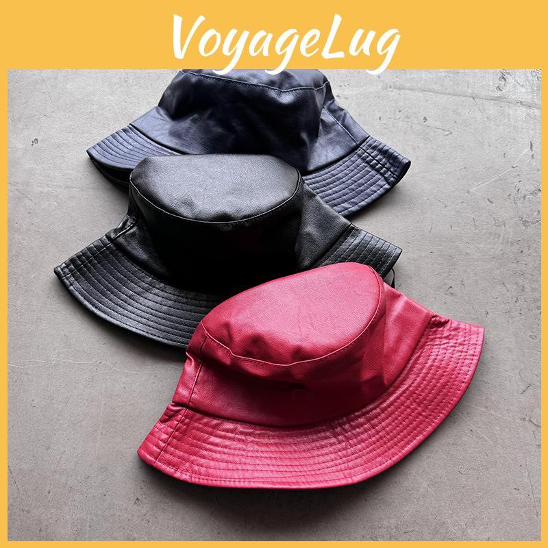This retro-style fisherman's cap features durable PU leather with a wide brim and flat crown. Designed for versatile seasonal wear, it offers sun protection, water resistance, and wind blocking. Suitable for casual urban outings, it adds a fashionable touch. Wipe clean with a damp cloth for maintenance.
