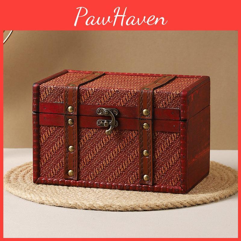 Wooden Retro Woven Lockable Medicine Box Organizer With Password For Home Office