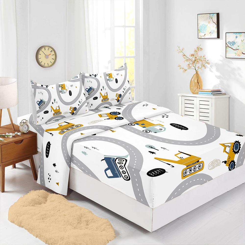Four-Piece Bed Sheet Digital Printing Excavator Mattress Protective Cover Bedding