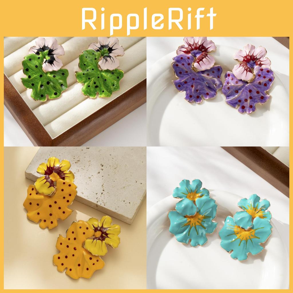 Fashionable Flower And Leaf Earrings With Drip Oil Finish For Trendy Women