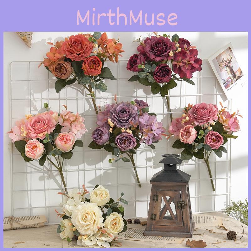 This European vintage-style silk flower bouquet features a combination of peony, hydrangea, and rose blooms crafted with high-quality silk material.it offers a realistic appearance with a detailed floral design. Ideal for home decor or wedding arrangements, it enhances any space. To maintain its beauty, gently dust with a soft cloth regularly.
