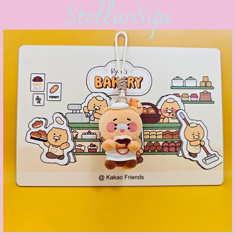 This plush keychain features a charming KAKAO FRIENDS character inspired by bakery treats, crafted from soft yarn material. it offers a lightweight and durable accessory for keys, bags, or backpacks. Ideal for adding a playful touch to daily carry items. Wipe clean with a damp cloth for maintenance.