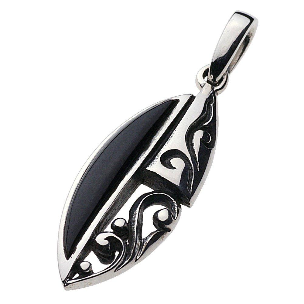 [Cenote] Arabesque Leaf Pendant with Onyx [Silver 925 Accessory] P0334