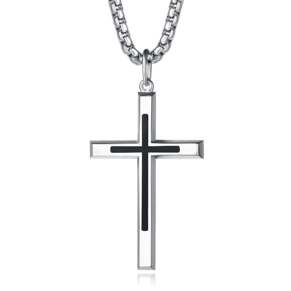 FANCIME Men's Cross Necklace, 925 Sterling Silver, Cross Pendant, 316L Stainless Steel (Surgical Stainless Steel) Chain, 60cm, Black, Amulet,