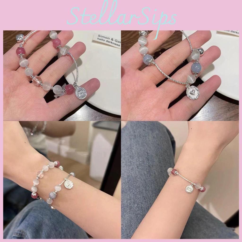 The pink cat's eye heart bracelet exudes a soft and romantic charm, perfect for those who appreciate subtle elegance. The heart-shaped cat's eye stone catches the light beautifully, creating a mesmerizing effect that draws attention and admiration. On the other hand, the blue cat's eye bell bracelet offers a cool and tranquil vibe. The bell shape symbolizes clarity and serenity, making it an excellent choice for those who seek a calm yet standout accessory.