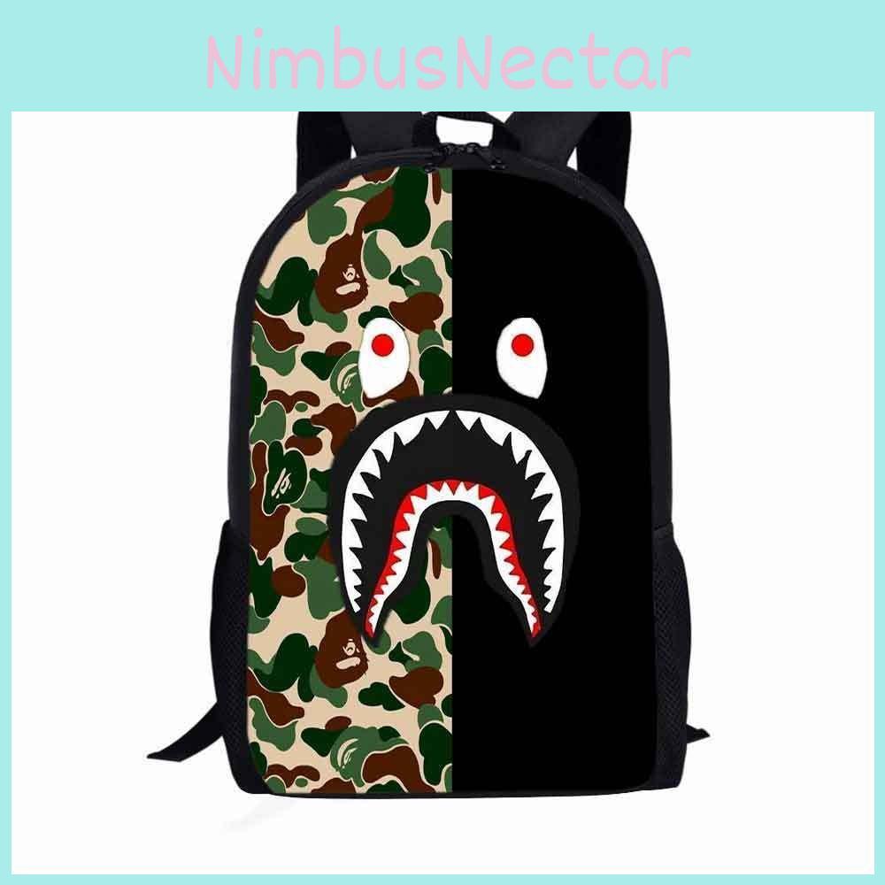 17inch Camouflage Shark Pattern Student Backpack With Breathable Lightweight Oxford Fabric For School Use