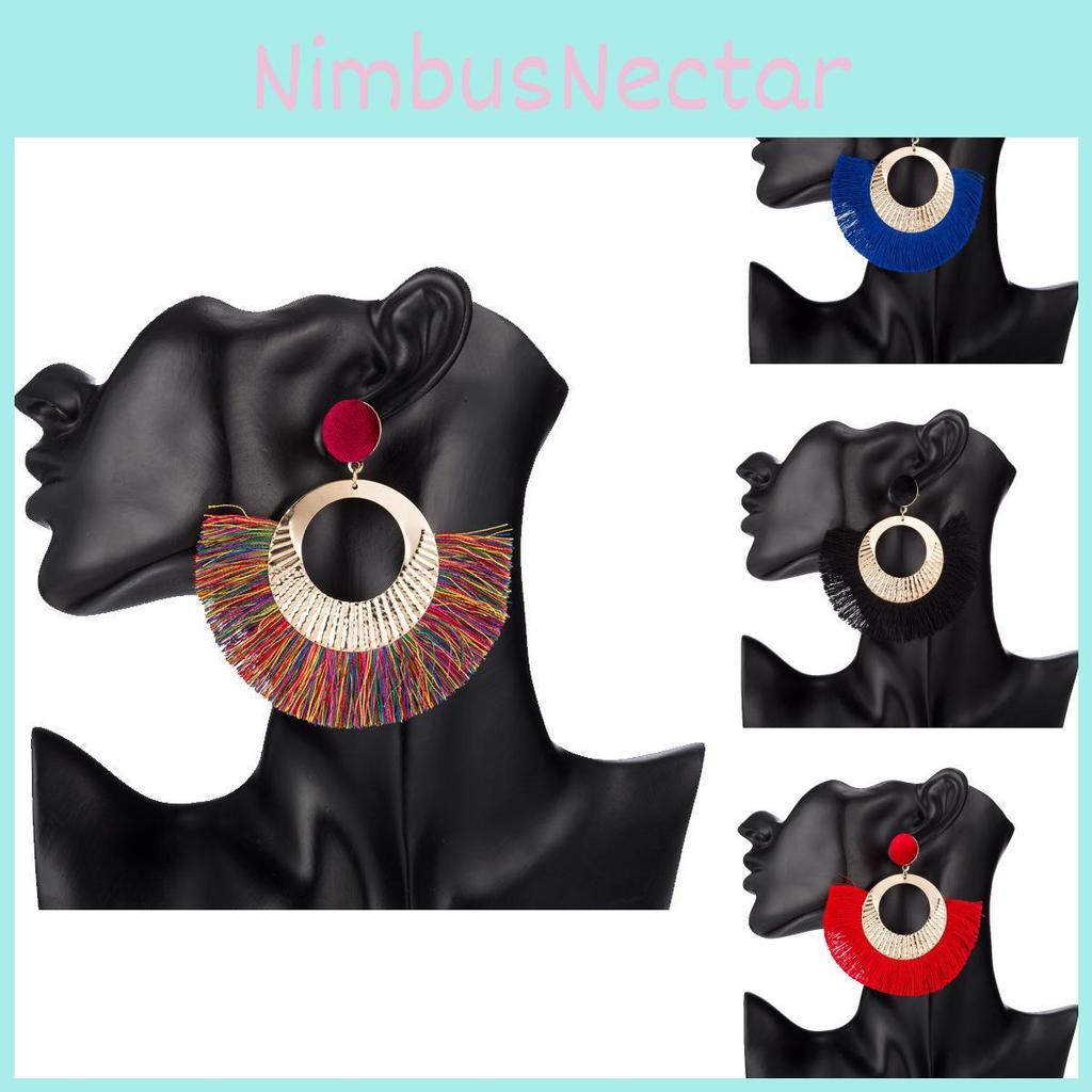 Elegant Design: These tassel earrings combine a simple yet chic geometric shape with trendy cotton threads, making them a versatile accessory for any outfit.