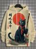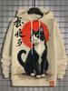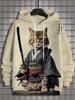 Japanese Samurai Cat Print Men's Hoodies Street Trend Hip Hop Y2k Clothes Fashion Pullover Autumn and Winter Casual Sweatshirts