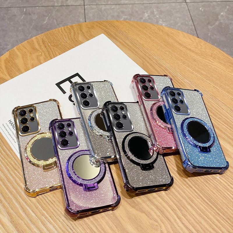 Shockproof Holder Ring Mirror Phone Case For Samsung Galaxy Note 20 S25 S24 S23 S22 S21 S20 FE Ultra Plus A06 A16 A36 5G Cover