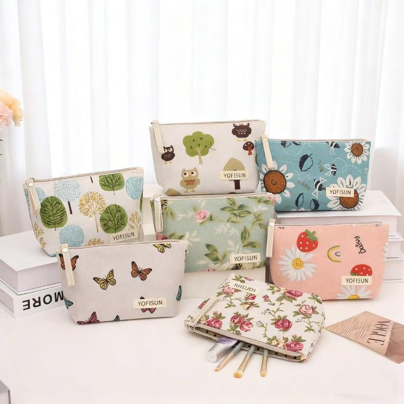 Cosmetic Bags Zipper Opening Key Card Holder Cartoon Student Pencil Case Coin Purse Ladies Hand Portable Storage Bag