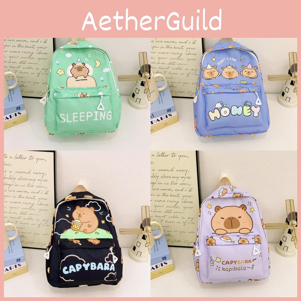 Cartoon Capybara Kids School Backpack With Large Capacity And Load Reduction For Young Children