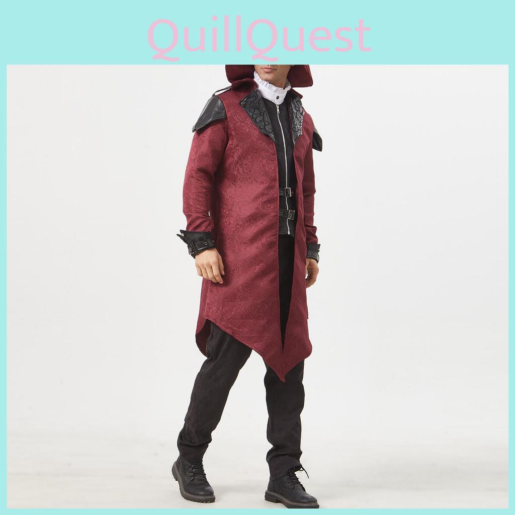 European Medieval Vintage Mens Padded Knit Coat With Hood For Halloweentheater Costumes