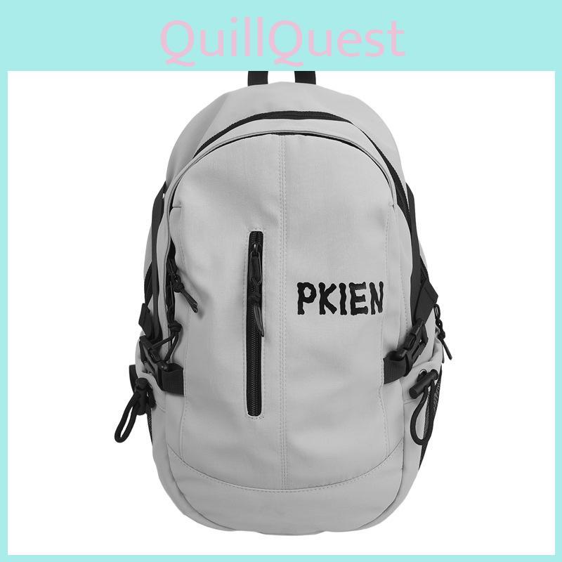 This large-capacity outdoor backpack features a lightweight nylon construction. Its ergonomic curved shoulder straps support comfortable carrying during daily commuting, travel, or school activities. Wipe clean with a damp cloth to maintain its sleek, solid-colored design with contrasting accents.
