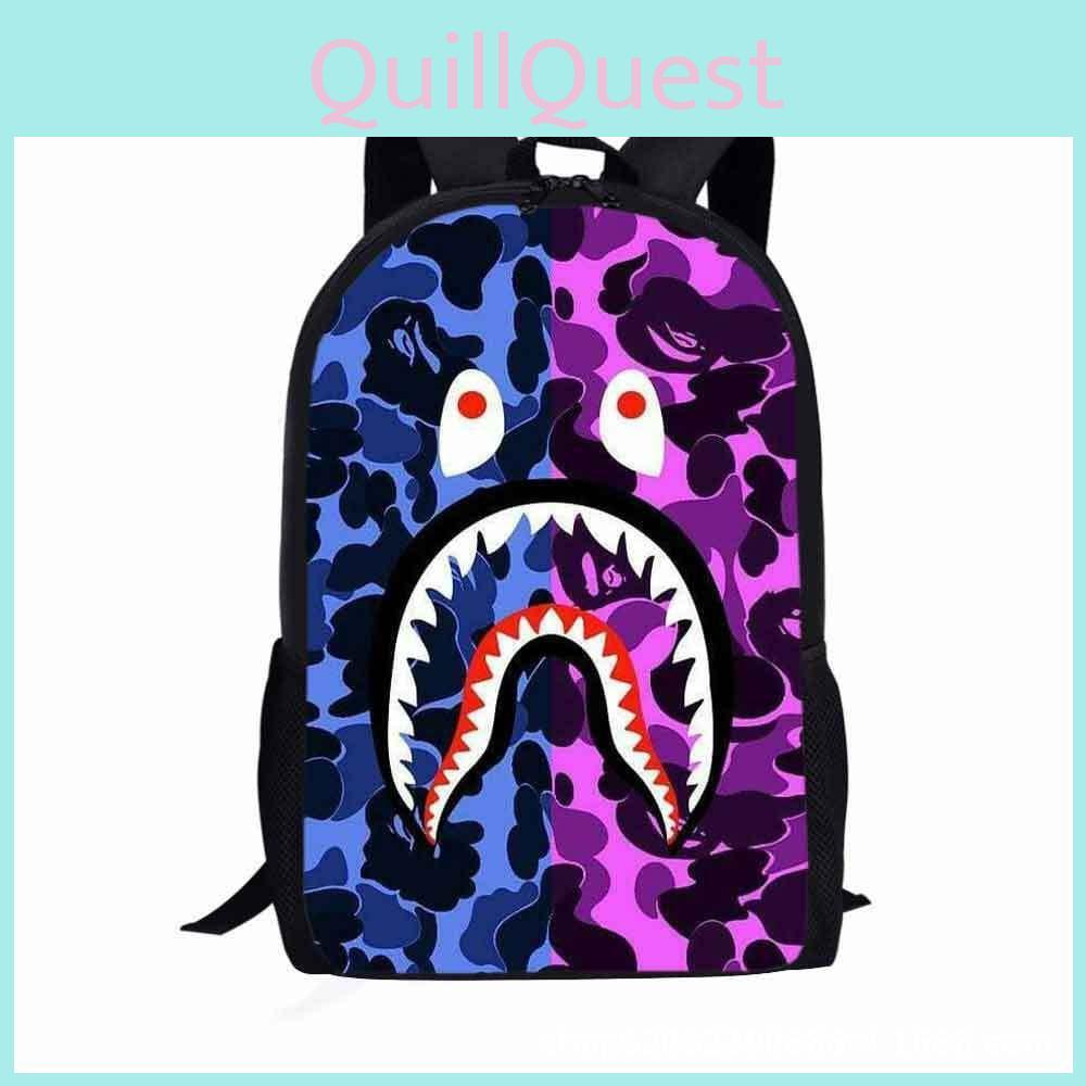 17inch Camouflage Shark Pattern Student Backpack With Breathable Lightweight Oxford Fabric For School Use