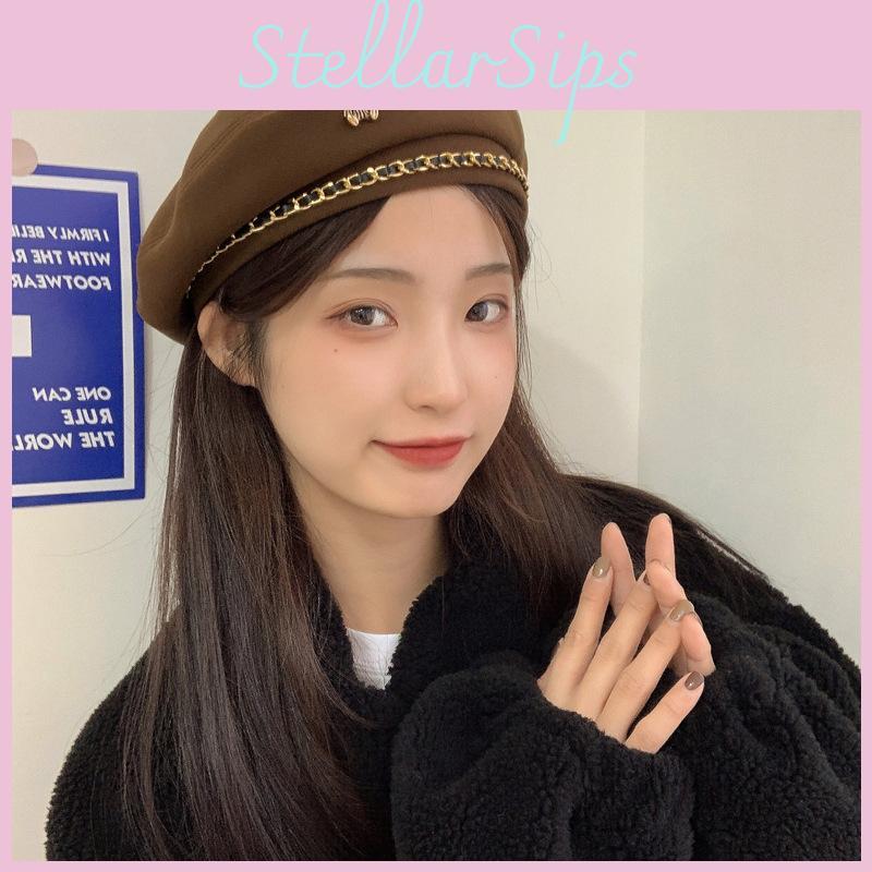 Vintage Fashionable Beret For Women Sweet Look With Chain Detail Autumn Winter