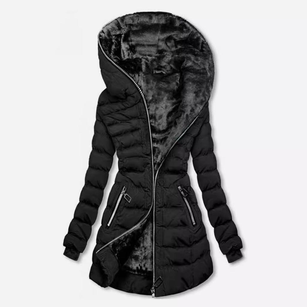 Discover warmth and style with this women's winter zipper jacket. Crafted with a medium outerwear thickness, this coat ensures comfort without compromising on elegance. The long sleeves and tailored neckline offer a chic silhouette, while the fleece-lined interior provides cozy insulation against the cold. Made entirely from cotton, both the lining and the outer material promise breathability and softness, making it an ideal choice for chilly weather. Perfect for those seeking a versatile mid-length coat that combines practicality with a fashionable flair.