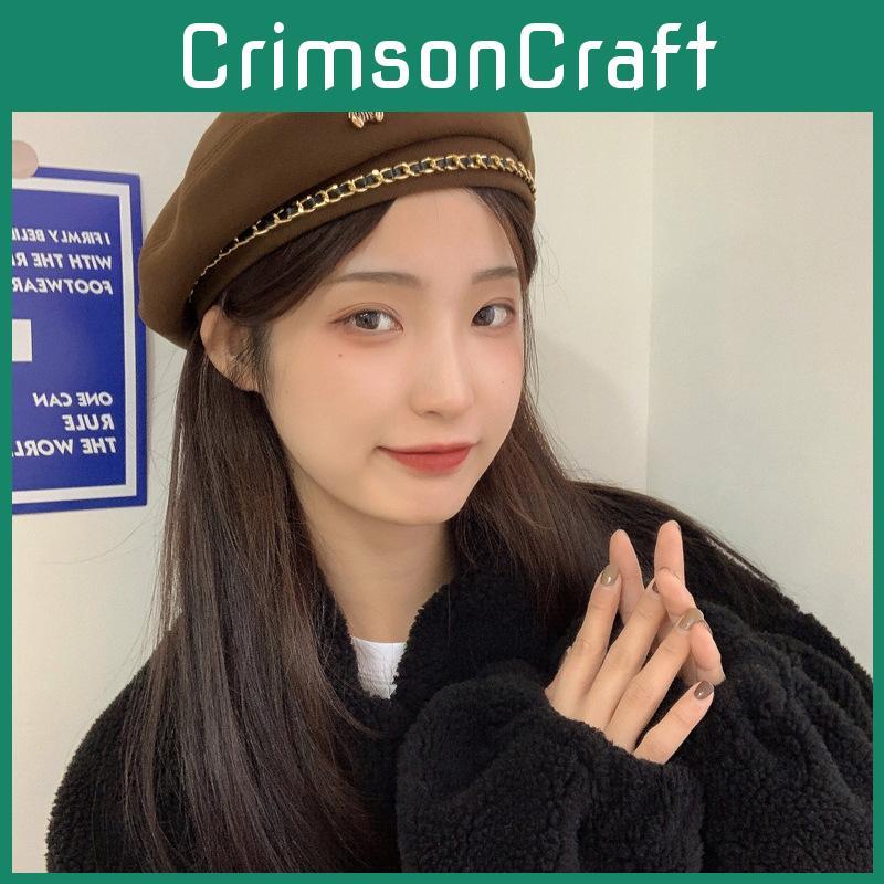 Cute Sweet Beret For Women In Chestnut Brown Or Black With Metal Chain Accent