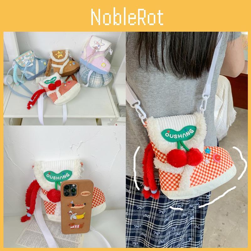 Plush Cartoon Shoe Shaped Shoulder Bag For Girls With Zipper Closure And Inner Pouch