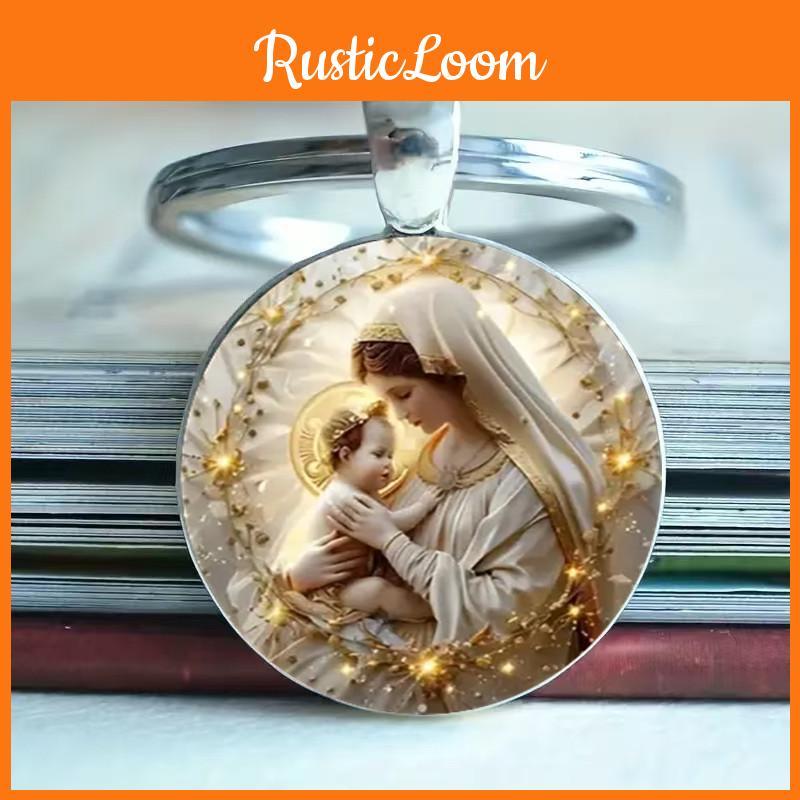 Blessed Virgin Mary Aluminum Round Keychain Gift For Religious Jewelry Collectors