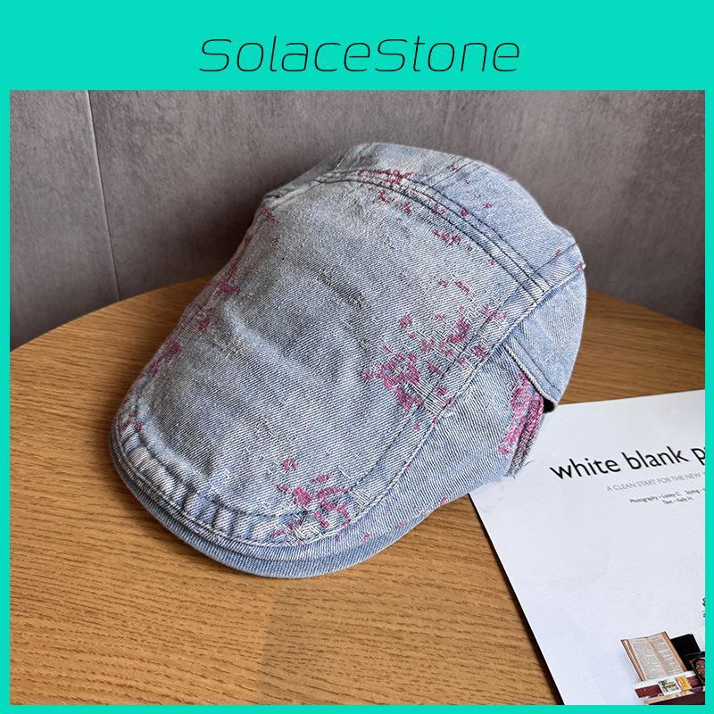 This face slimming denim beret hat features a breathable cotton blend fabric with a short brim. Designed for casual outings, it provides effective sun protection and ventilation. Made of durable denim with a light blue, navy, or black finish, its suitable for year-round wear. Wipe clean with a damp cloth for maintenance.