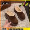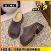 Leather Thick-soled Heightened Piled Bag Head Half Slippers Women's Shoes Autumn and Winter New Snow Boots Fluffy Cotton Slippers