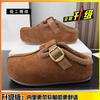 Frosted Cowhide Retro Platform Slippers Women's Shoes Winter New Lamb Wool Bag Head Half Slippers Cotton Shoes