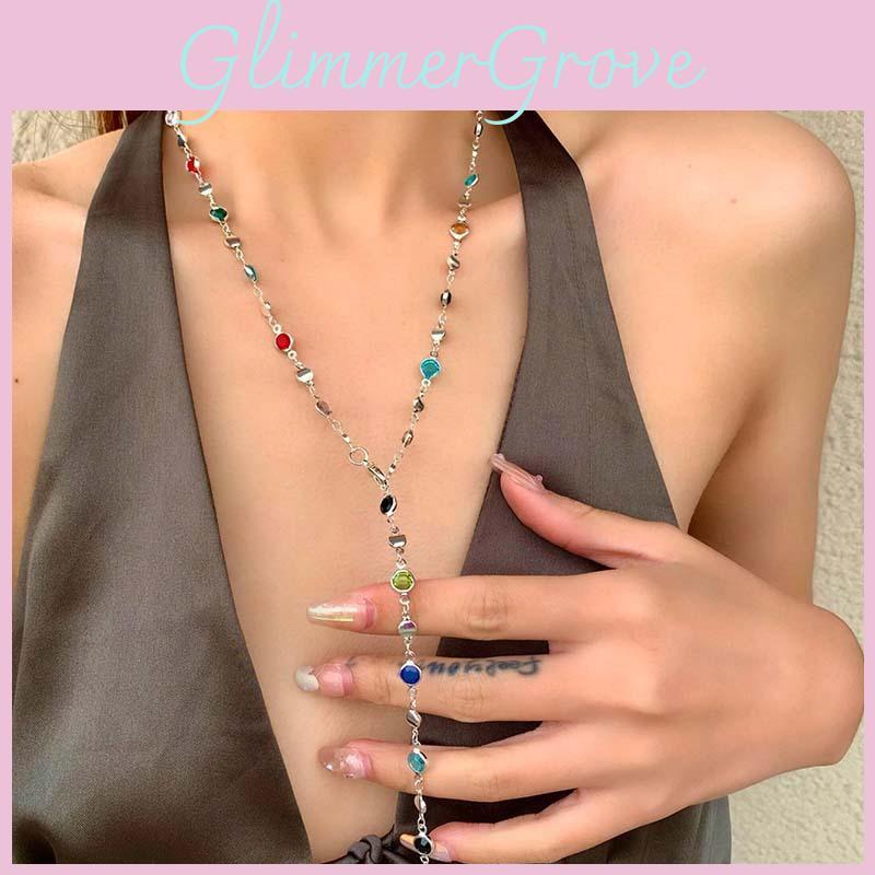 Fashionable Women's Geometric Long Chains With Colorful Crystal Accents For 2024
