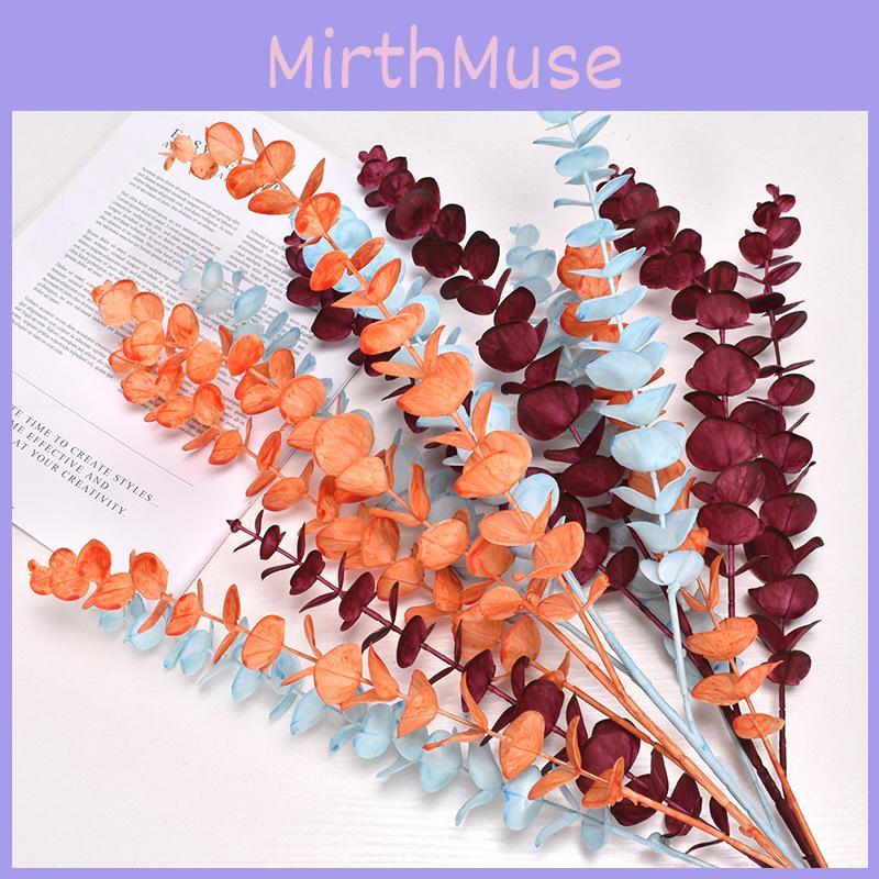 This artificial eucalyptus leaf arrangement features soft, silk flowers crafted through precise casting, delivering lifelike appearance and durability. it boasts various vibrant colors including gold, red wine, pink, white, blue, orange, and mist blue, suitable for diverse decorative needs.