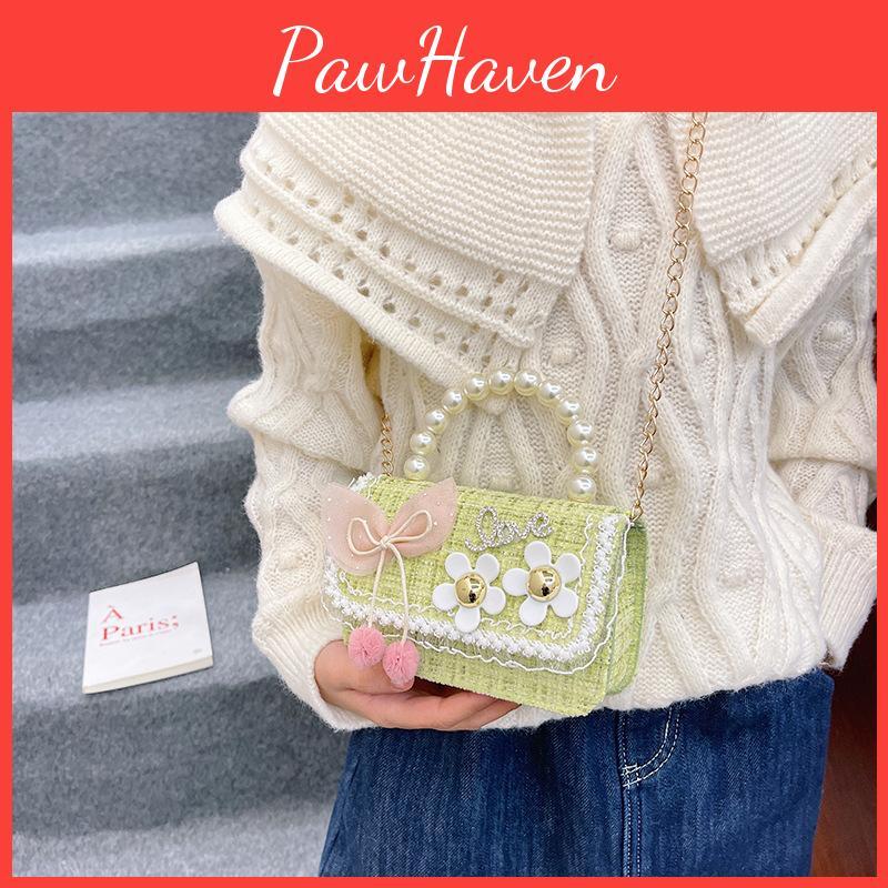 Kids Girl Stylish Small Bag With Pearl Handle And Colorful Pattern For Everyday School And Play