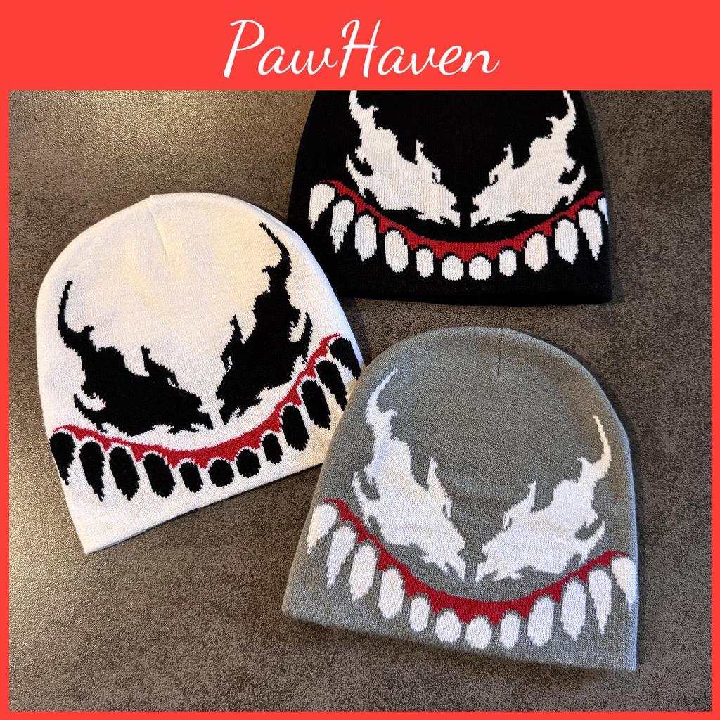 Venom Style Knit Hat Unisex Acrylic Fabric For Streetwear And Cold Weather
