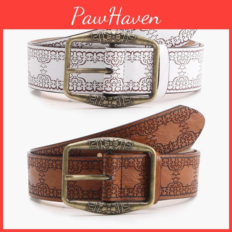 personalized waist belt, embossed PU belt, womens fashion belt, trendy waist accessory, adjustable waist belt, ethnic style belt, metal clasp belt, custom leather belt