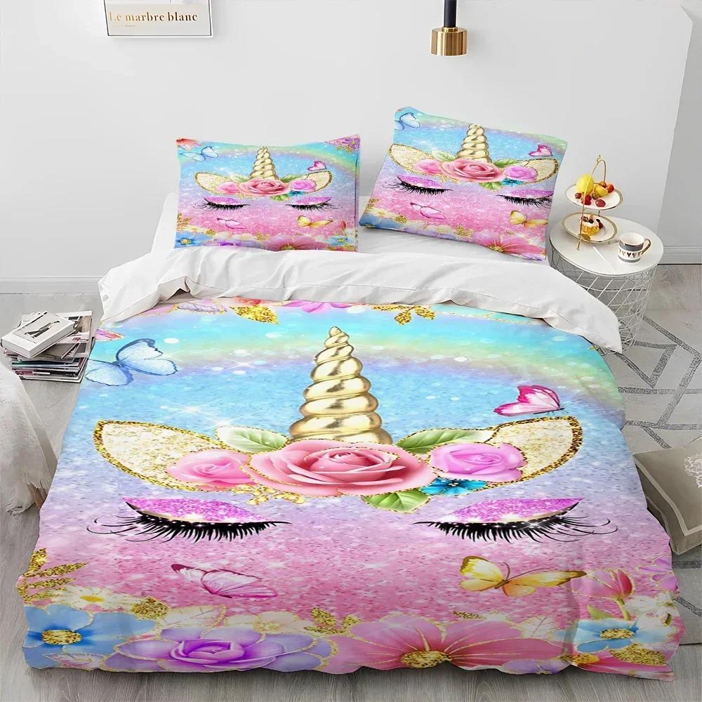 Luxury New 3D Print Unicorn Cute Cartoon Comforter Bedding Set,Duvet Cover Bed Set Quilt Cover Pillowcase,Queen Bedding Set