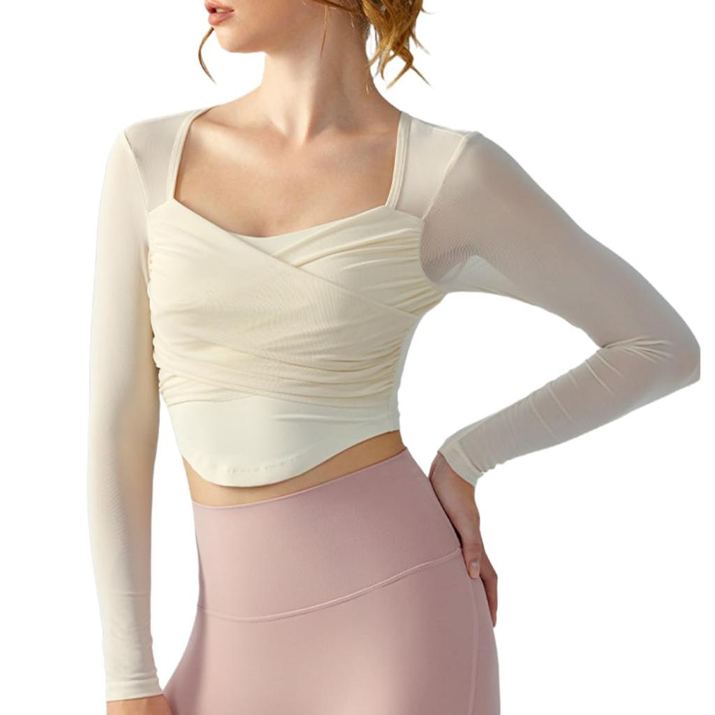 Stylish open-back design and short length: This elegant and feminine design accentuates your feminine charm. The sophisticated cross design adds a stylish touch to your yoga wear. The short length makes your upper body appear shorter and your legs look longer. It pairs perfectly with leggings! This top alone will add a touch of style!