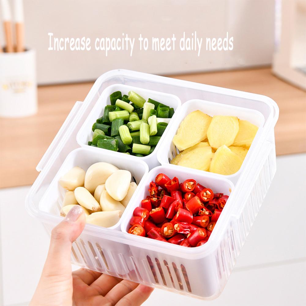 4/6 Grids Refrigerator Storage Box Onion Ginger Garlic Vegetable Drainage Basket Ingredients Storage Container Kitchen Organizer
