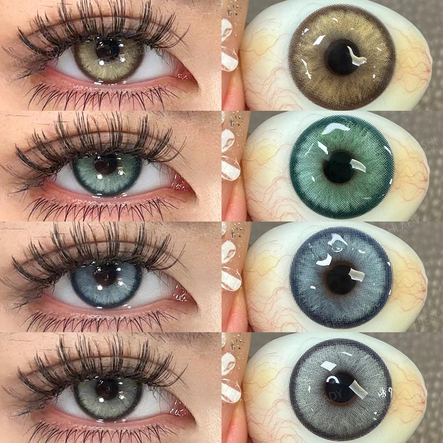 FreshLady 1 Pair 2pc 14.2mm Yearly Disposable Colored Contact Lenses, 40% Water, Brown/Green/Blue/Gray, Soft & Breathable for Daily Wear