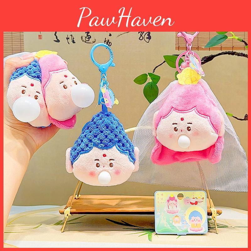 Adorable Plush Buddha And Guanyin Bubble Blowing Keychain Cute Cartoon Accessory