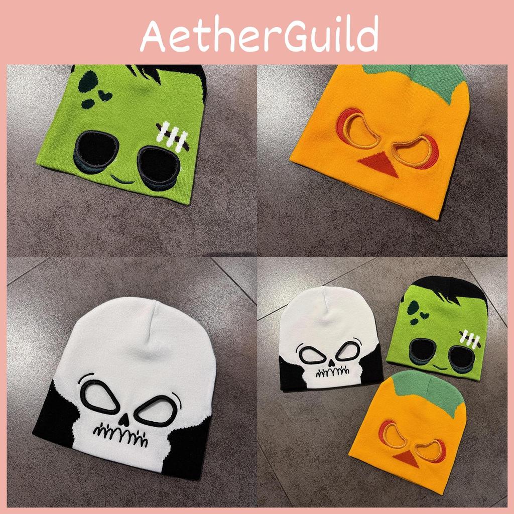 Halloween Pumpkin Skull Pattern Knitted Beanie Hat With Show Eye Design For Party And Streetwear