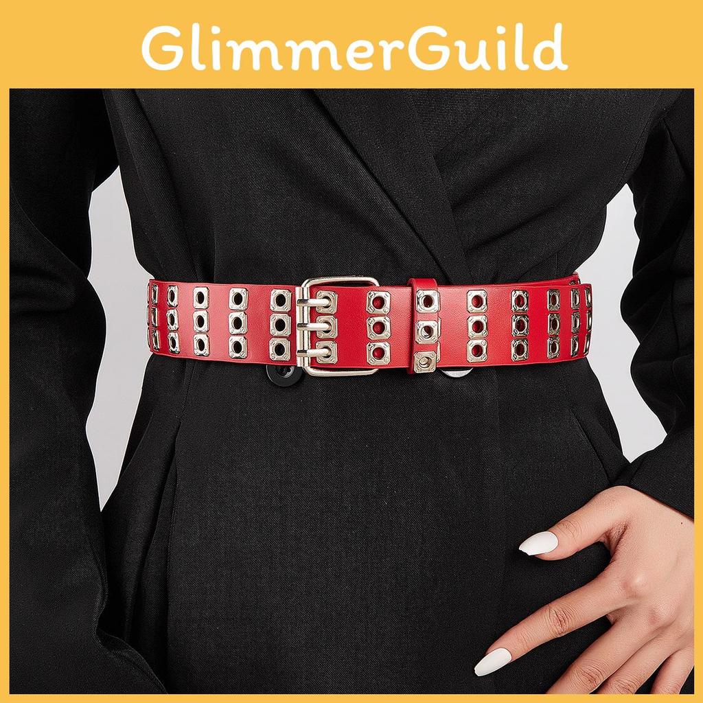 This fashion-forward belt features a double-buckle design crafted from durable faux leather, measuring 3.8 cm in width with a length of 108 cm. The iron buckle with a pin closure supports secure fastening, while circular embellishments add a trendy touch. Ideal for pairing with denim or casual outfits. Wipe clean with a damp cloth for maintenance.