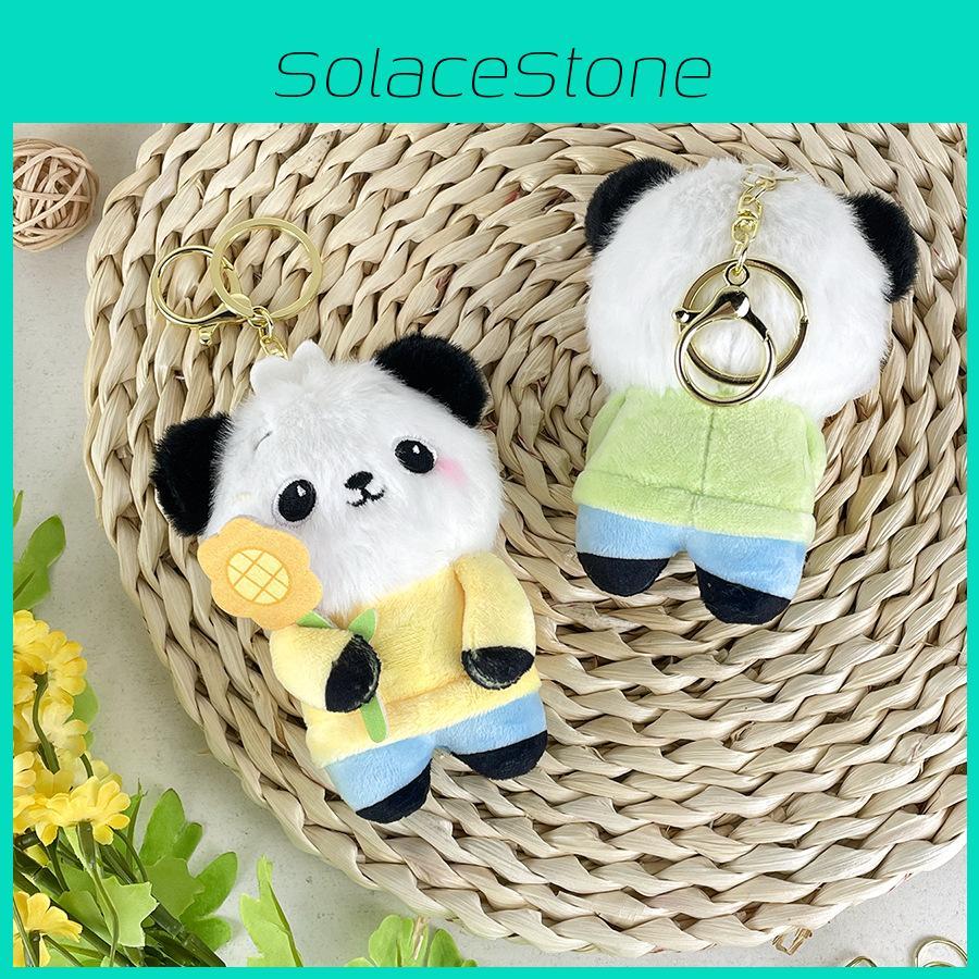 Cute Sunflower Panda Stuffed Keychain With Soft Material For Adorable Bag Accessories