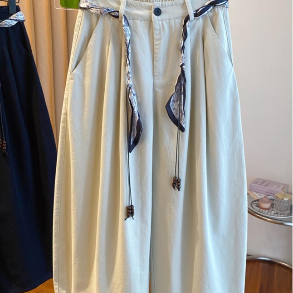 Fashionable High-waisted Solid-color Design Casual Pants for Women's Autumn and Winter, Versatile, Youthful and Elegant Wide-leg Pants