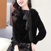 French Bow Tie-up T-shirt Temperament Fashionable Gold Velvet Top Spring 2025 New Design