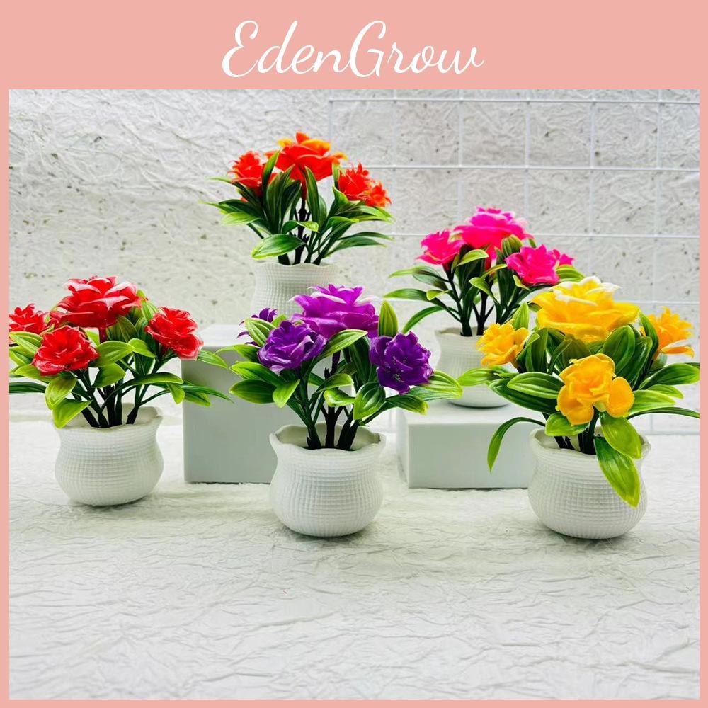 Rose Faux Potted Flower With Injection Molded Plastic For Home And Office Decoration
