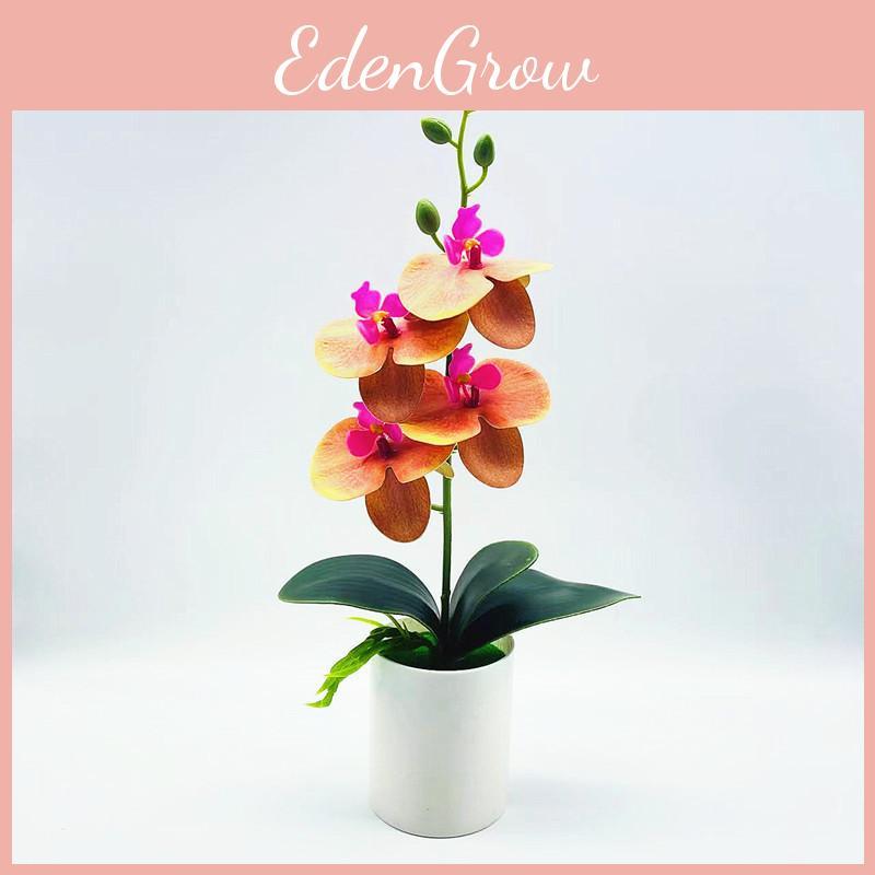 This artificial orchid plant features a 3D-printed design crafted from soft PVC material, measuring approximately 14.6 inches in height . Its realistic appearance enhances home or office decor, bringing natural beauty indoors. Ideal for desktop displays, table centerpieces, or event decorations. Wipe clean with a damp cloth for maintenance.
